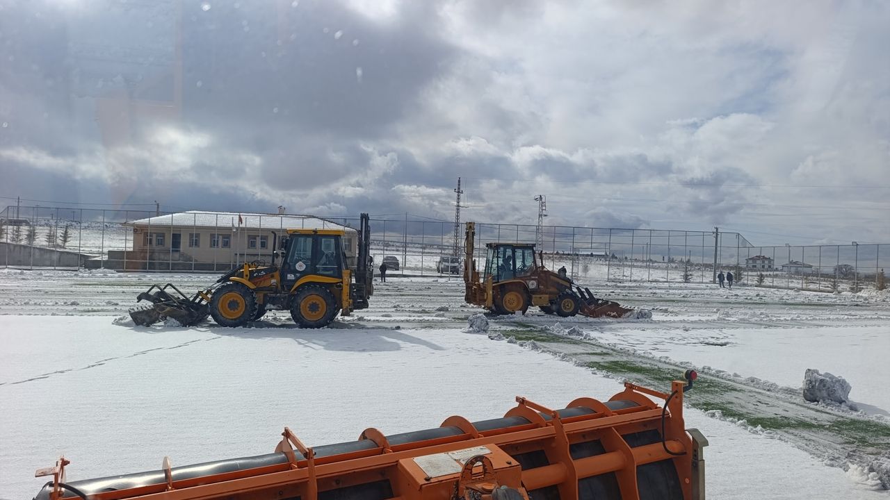 Hacıbektaş’ta yarın oynanacak olan K. Avanos Spor karşılaşması öncesinde, Dedebağı Futbol Sahası’nda yürütülen kar temizleme çalışmaları başarıyla sonuçlandı. Olumsuz hava koşullarına rağmen yoğun bir mesai harcanarak zemin futbol oynamaya elverişli hale getirildi.
